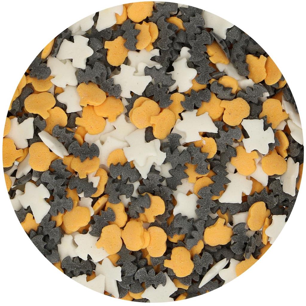 Dekorieren Sie Ihre Cupcakes und Kuchen zu Halloween mit diesem gruseligen Halloween-Mix von FunCakes! Der Mix besteht aus Geistern, Kürbissen und Fledermäusen. Auch gut geeignet zum Dekorieren gruseliger Desserts.