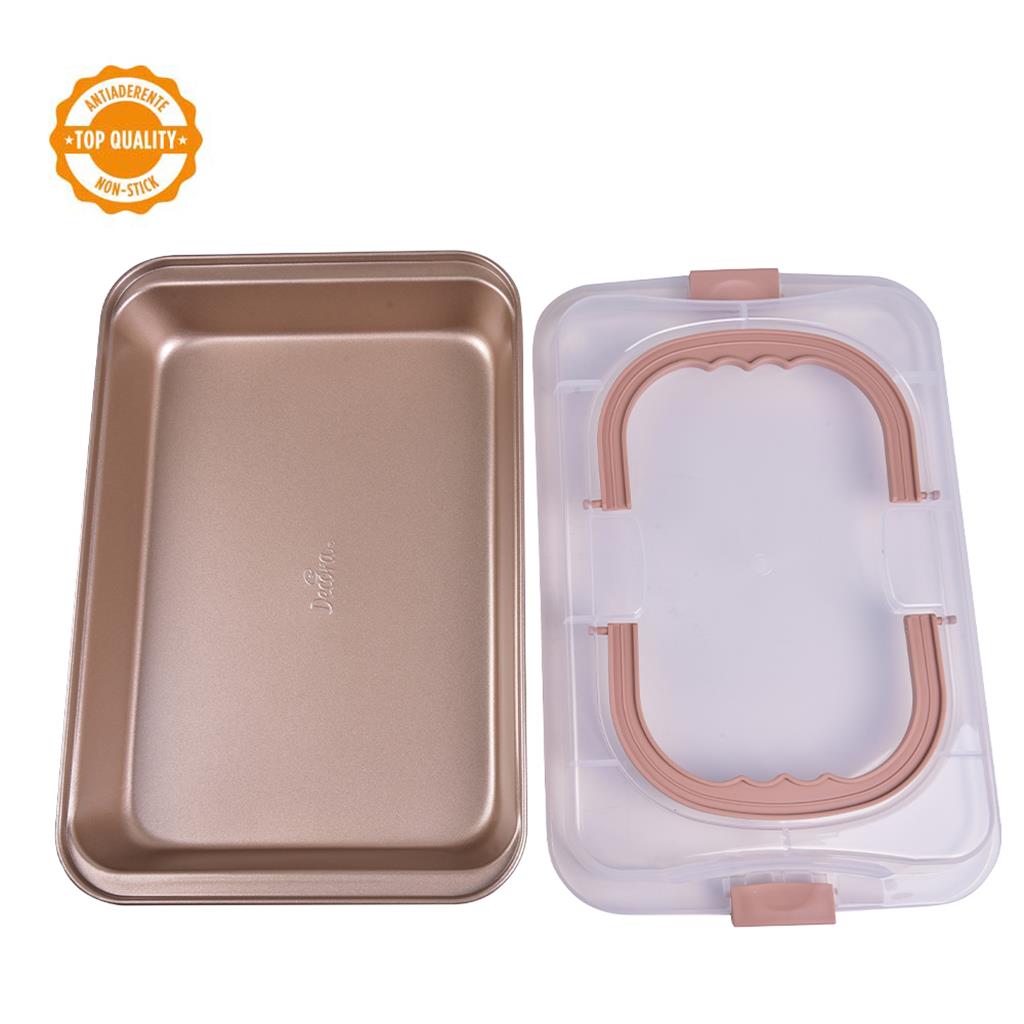 2-teiliges Set bestehend aus 1 hochwertiger Antihaft-Metallform und 1 praktischem Deckel zum Aufbewahren und Transportieren. Einfach zu verwenden, es eignet sich perfekt für süße und herzhafte Zubereitungen.